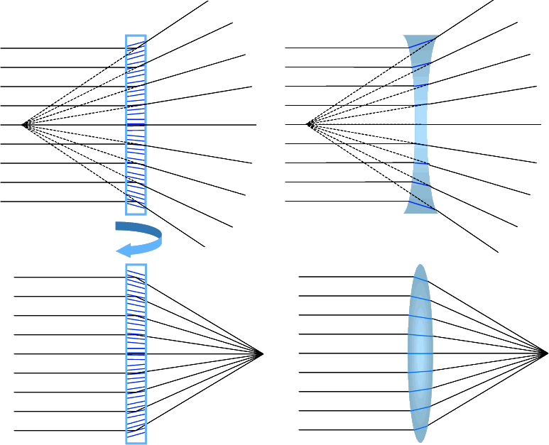 With the right setup, we can also produce lenses. Again, flipping these will revert their function.