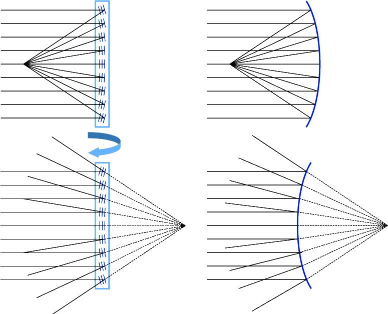 Notably, HOE's do not always behave like their conventional counterparts: if we flip the hologram, a convex mirror becomes a concave one !